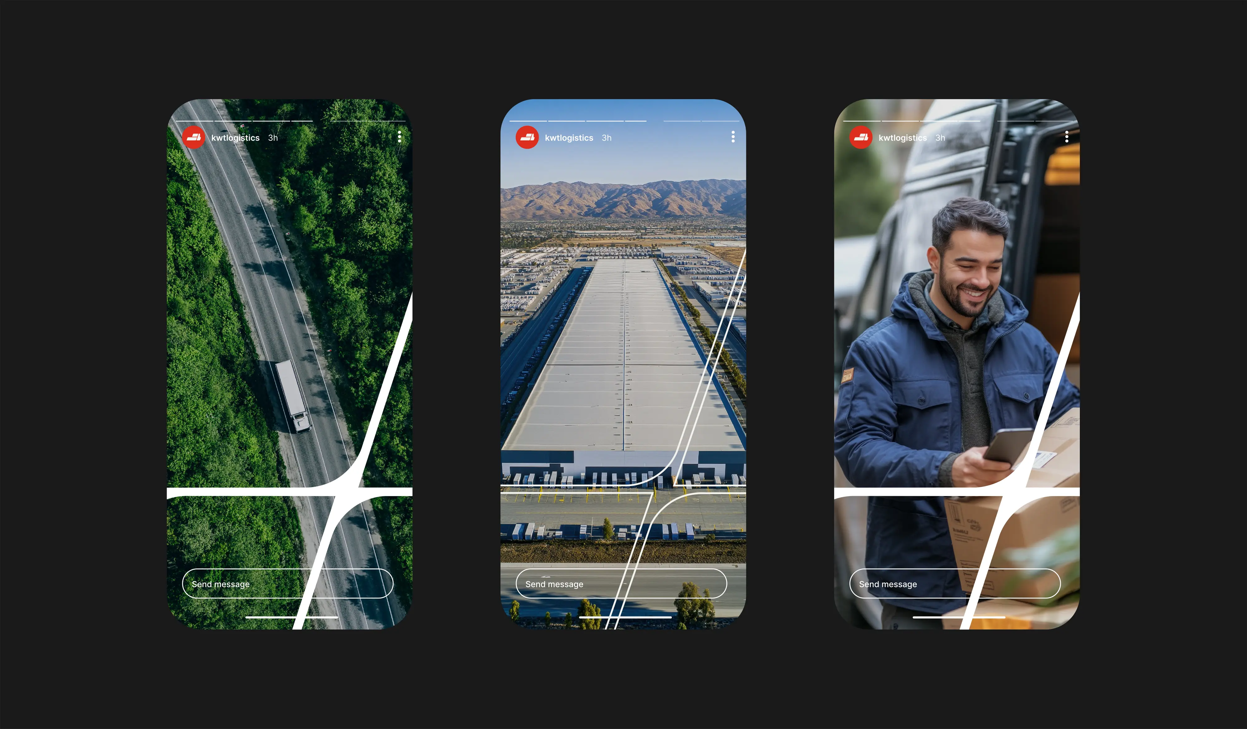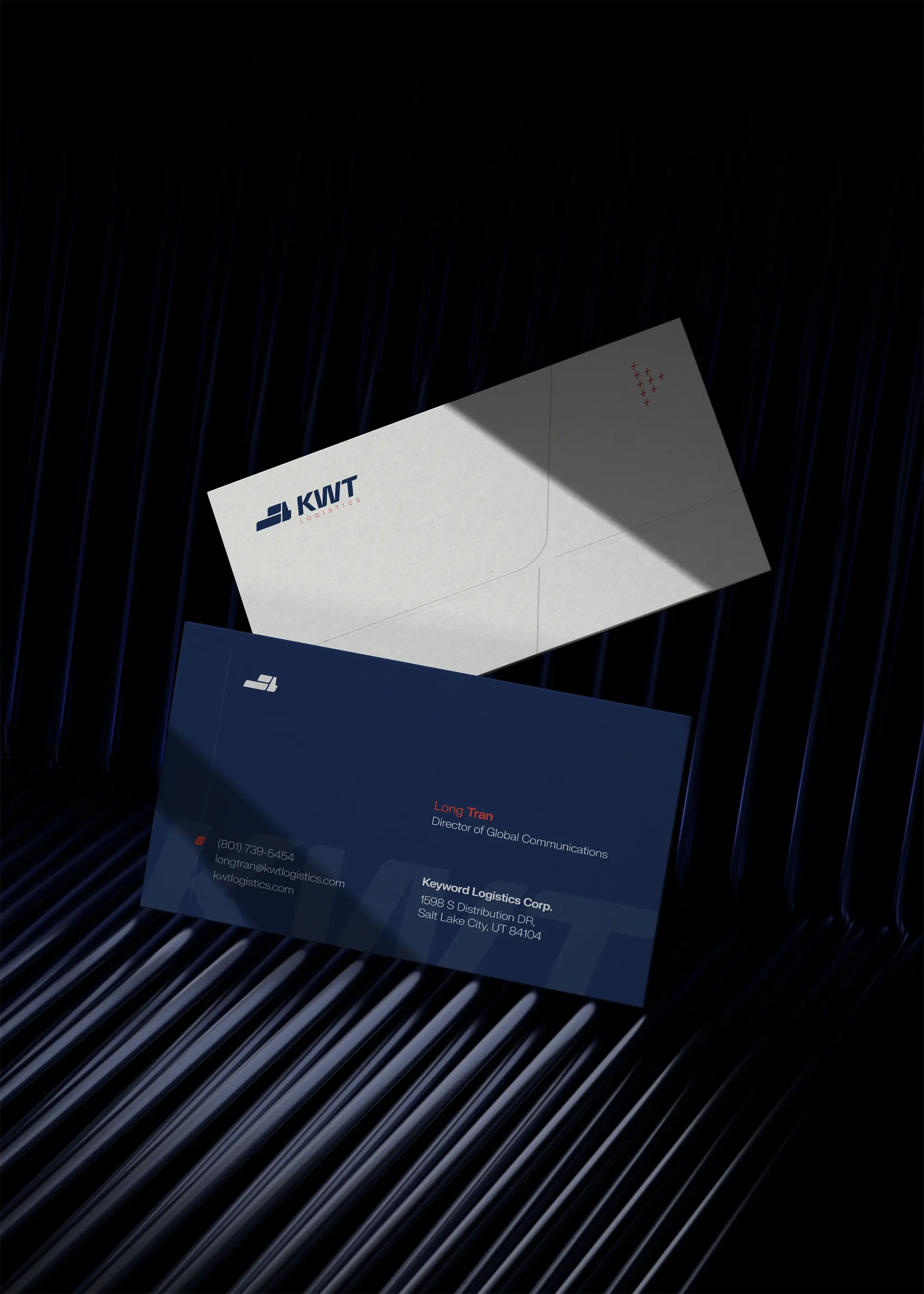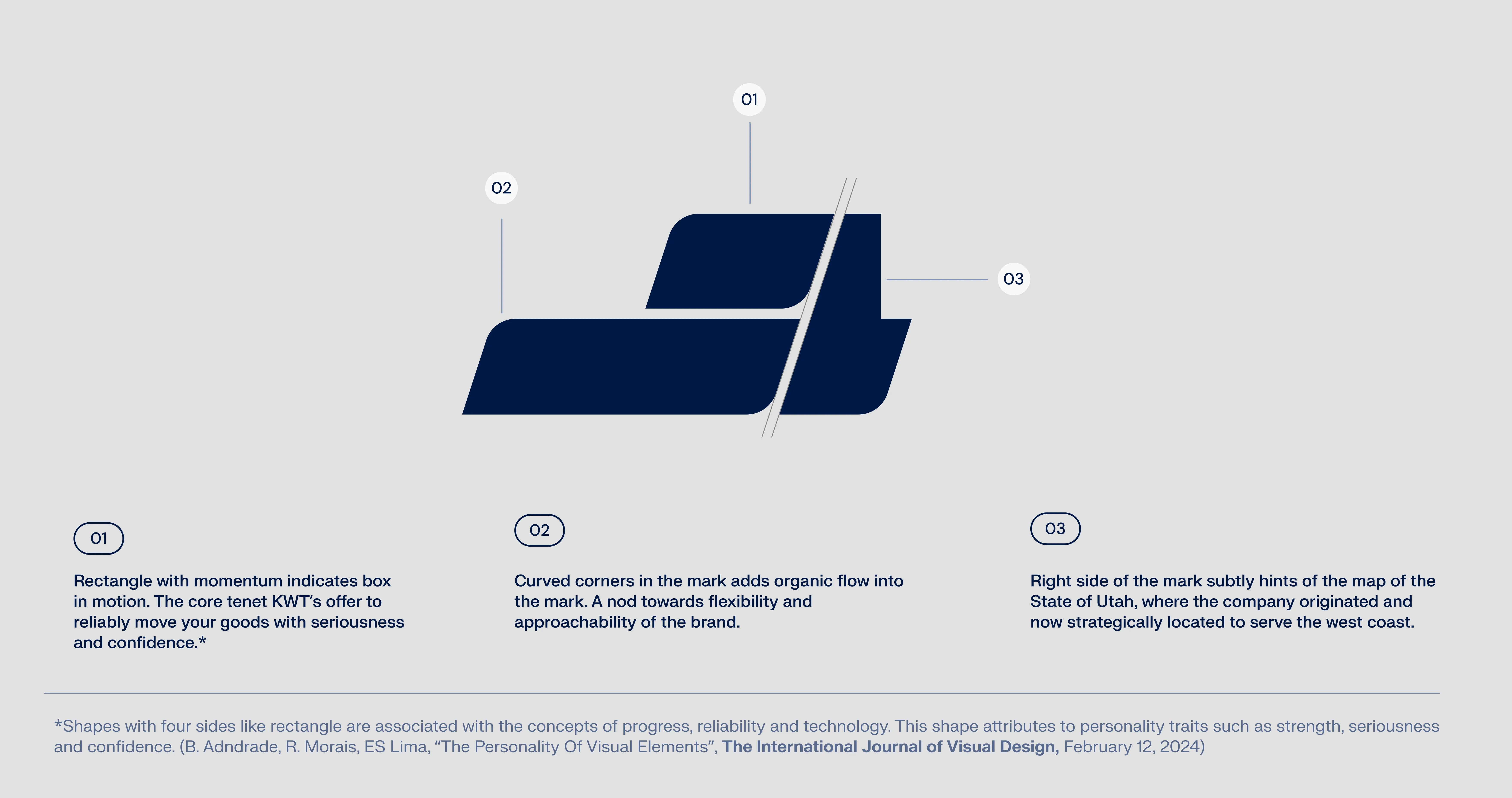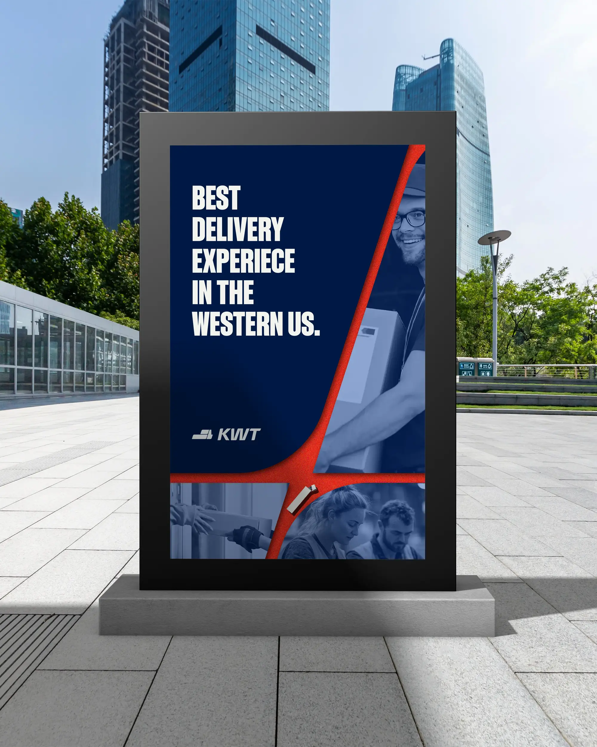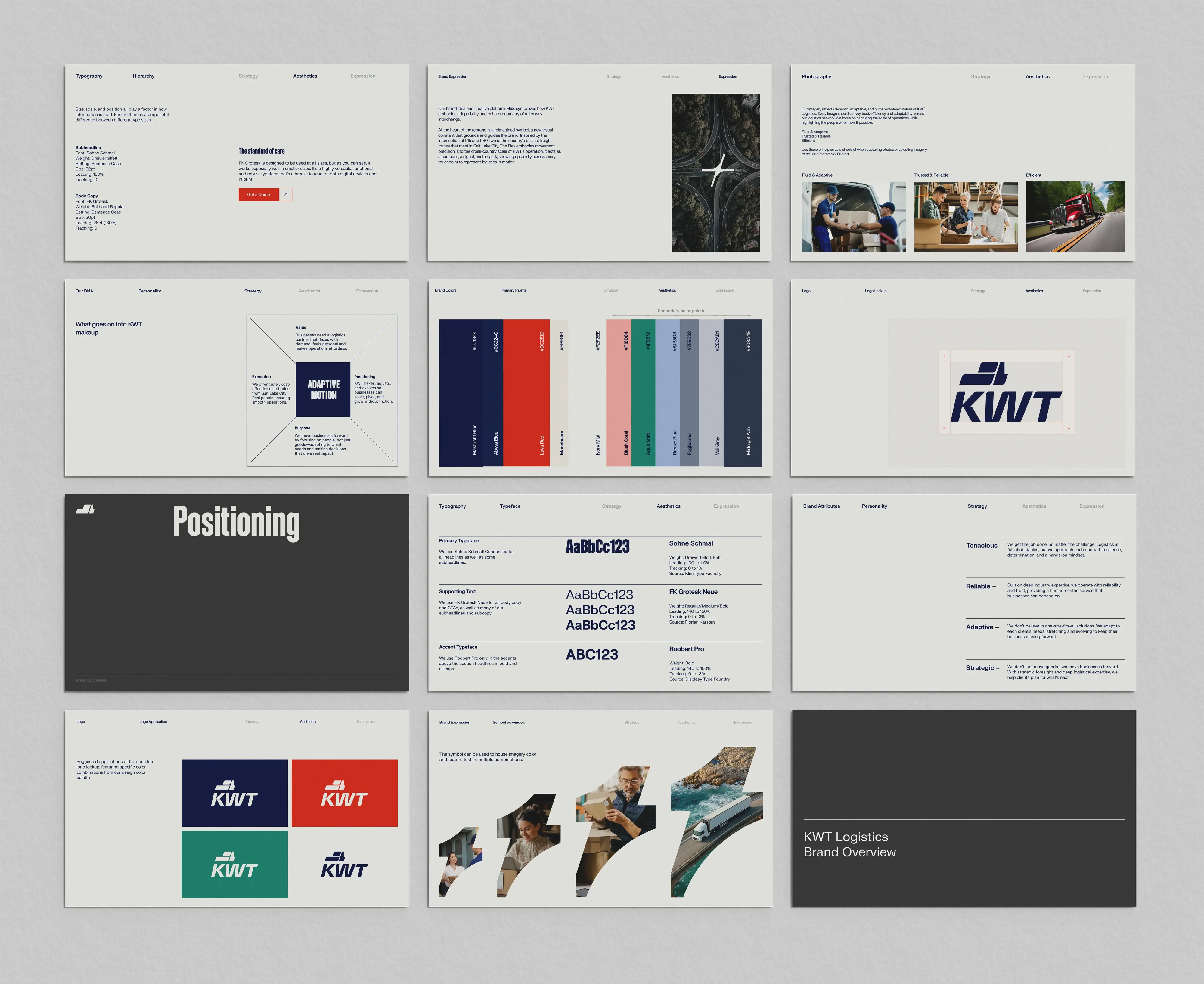 The Flex is KWT Logistics’ core brand expression, rooted in the strategic geography of Salt Lake City, where two of America’s most vital freeways, I-15 and I-80, intersect. These freeways connect the country from Canada to Mexico and coast to coast, forming a powerful logistics backbone. From this infrastructure, we drew a graphic element that began as a simple moving box from the logo.