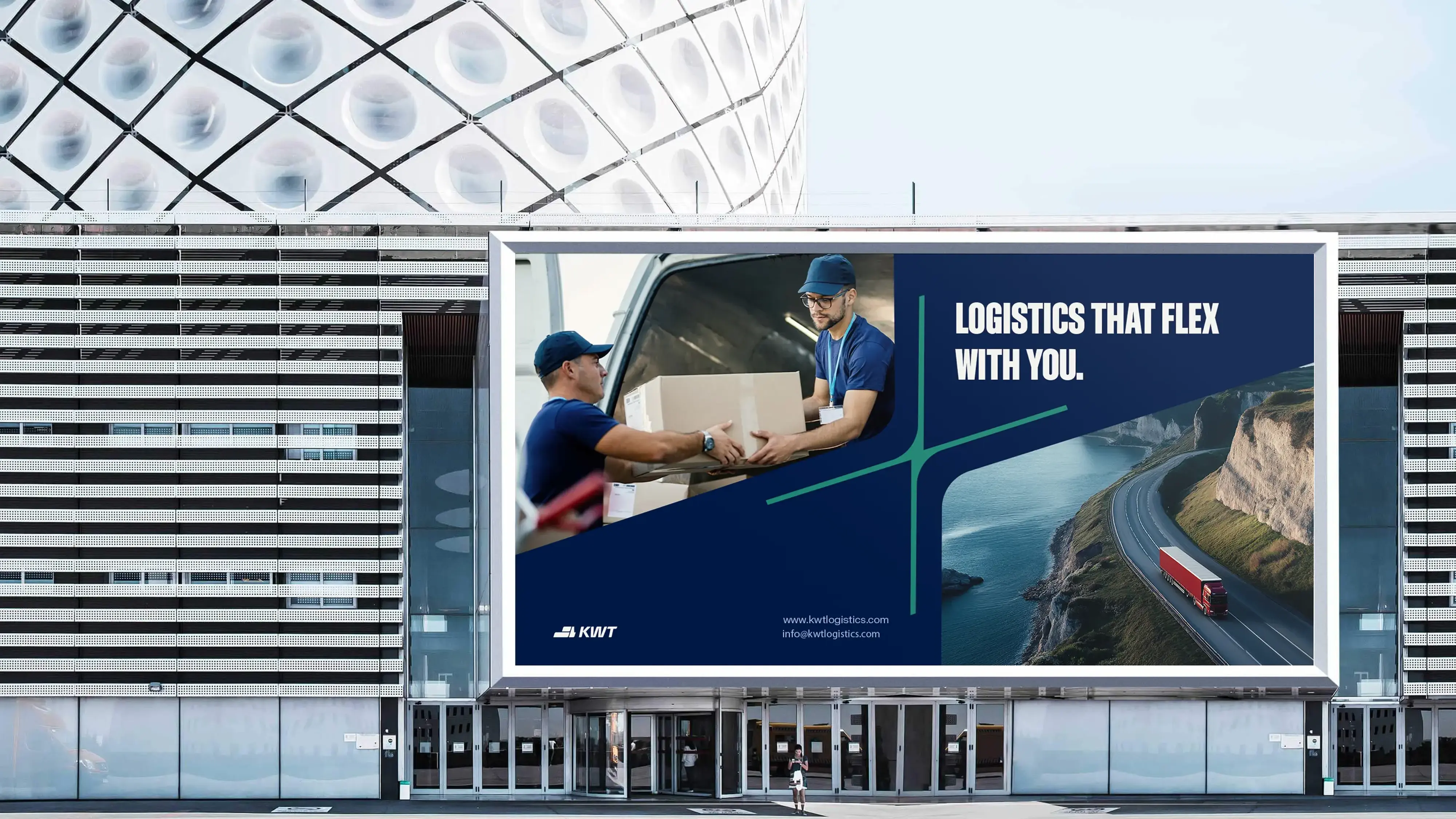 Over time, it evolved into The Flex: a dynamic, standalone mark echoing the geometry of a freeway interchange. As it stretched and adapted, it revealed a deeper metaphor, movement, agility, and presence. The Flex is more than a shape, it’s the visual embodiment of KWT’s adaptability and dominance in the Western U.S. logistics market.